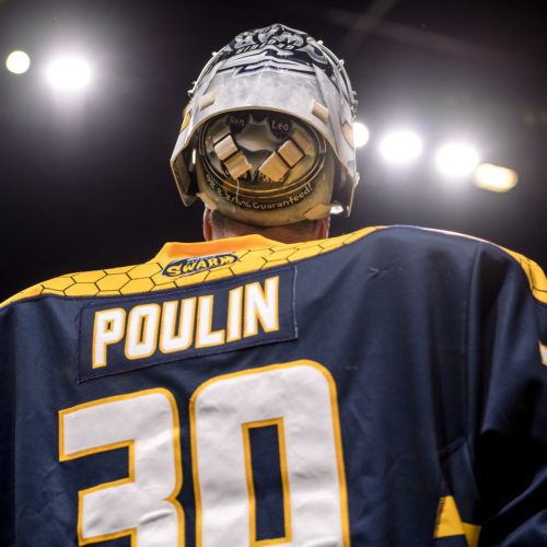In three seasons with the Swarm, Poulin has a 34-13 record, an 11.48 GAA, a .781 SV%, and 29 assists. In three postseasons with the Swarm, the veteran goaltender has a 4-2 record, an 11.46 GAA, and a .771 SV%.